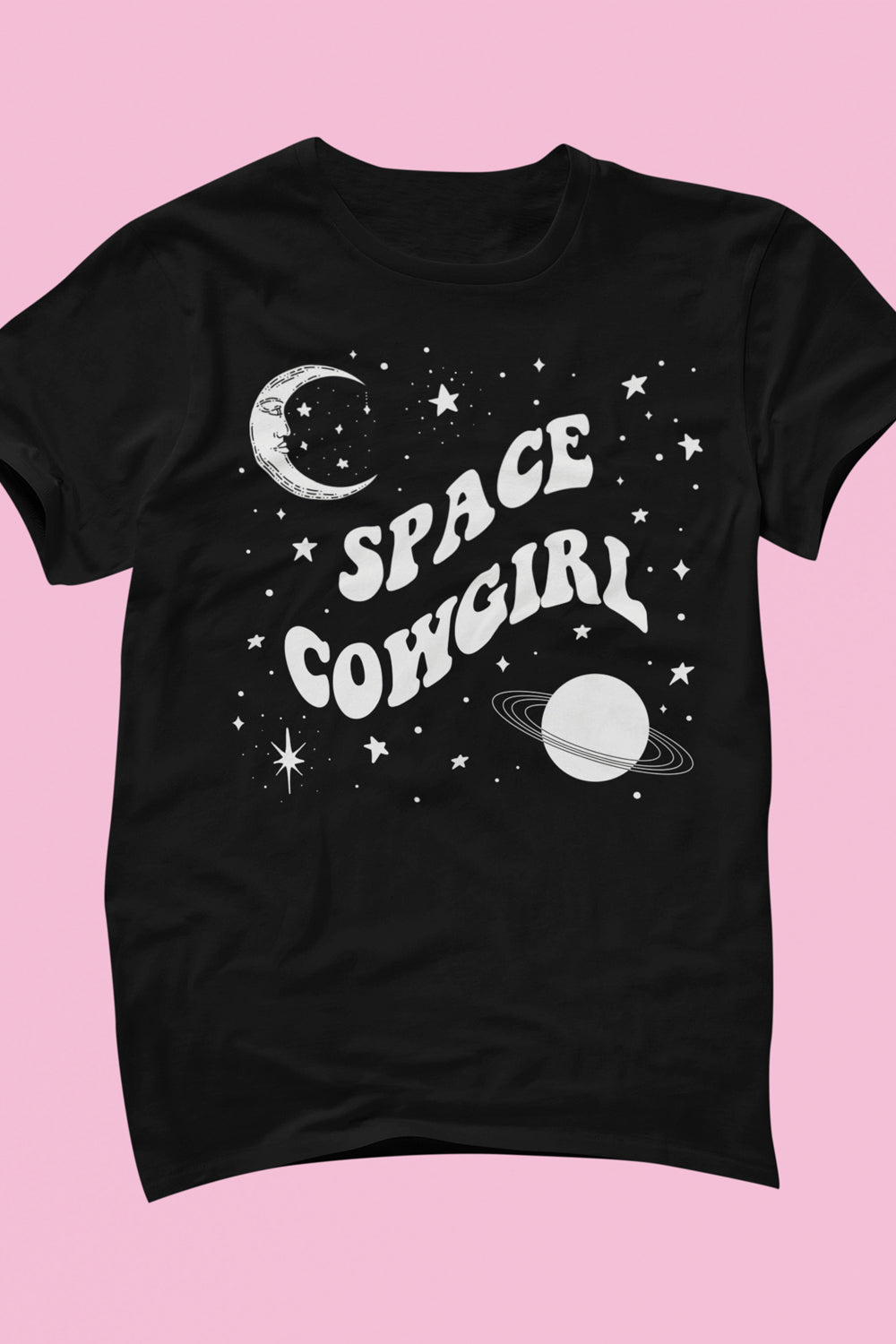 Our Space Cowgirl Celestial Tee with cosmic details is perfect for all those late night rides.